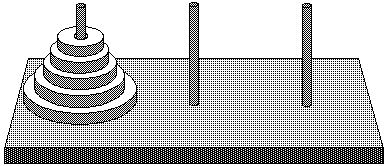 それによると, フランスの数学者ルカ('Edouard Lucas, 1891--1994)が, 彼の著書 “R'ecr'eations Math'ematiques”(Vol. III, pp.55-59) の中で,ハノイの塔を紹介したそうだ. 天地創造のときに神様が 64 段のハノイの塔を作り, それをブラーマ寺院の僧侶たちがルールに従って移動を続けている. その作業が完了したときには,この世が終わりを告げるという. どうやら,このハノイの塔の話はルカ自身の創作のようである.